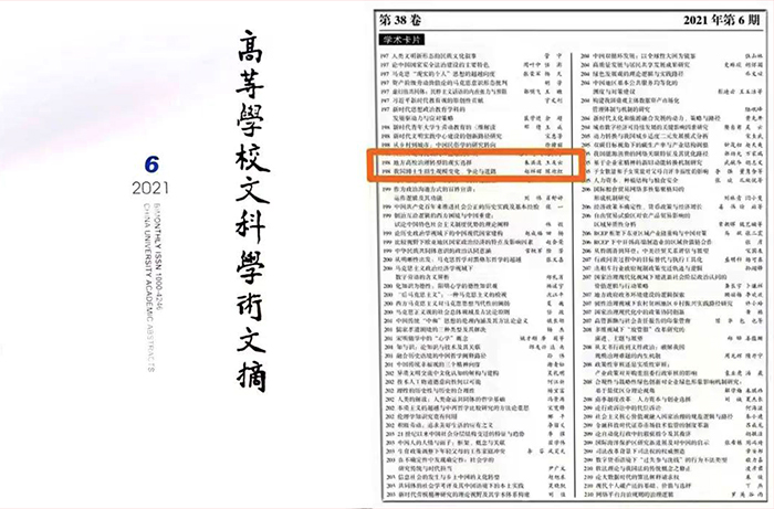 朱洪波等合著的论文同时被《新华文摘》《高等学校文科学术文摘》《人大复印报刊资料》摘编和全文转载,彰显了我校学者在国内人文社会科学研究中学术影响力的提升,凸显了我校哲学社会科学的原创能力和社会影响,也为学校治理转型和实现内涵、特色、融合发展提供了理论阐释。